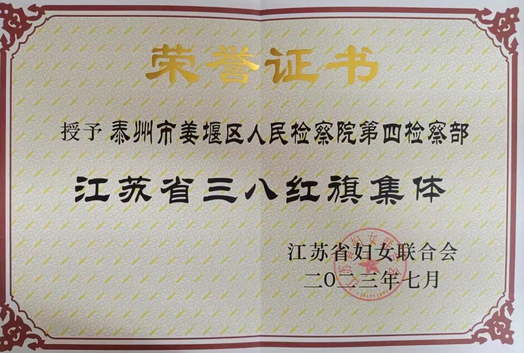 巾帼心向党,检蓝绽芳华!我院第四检察部获评“江苏省三八红旗集体”!